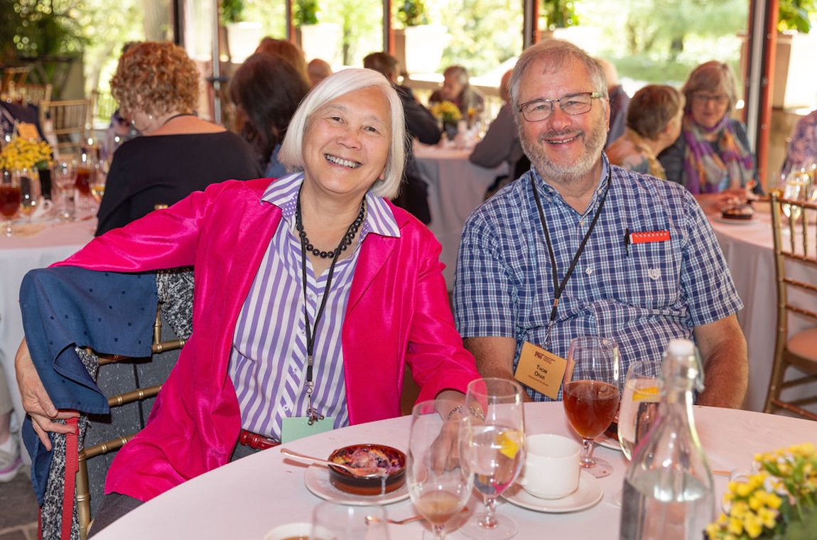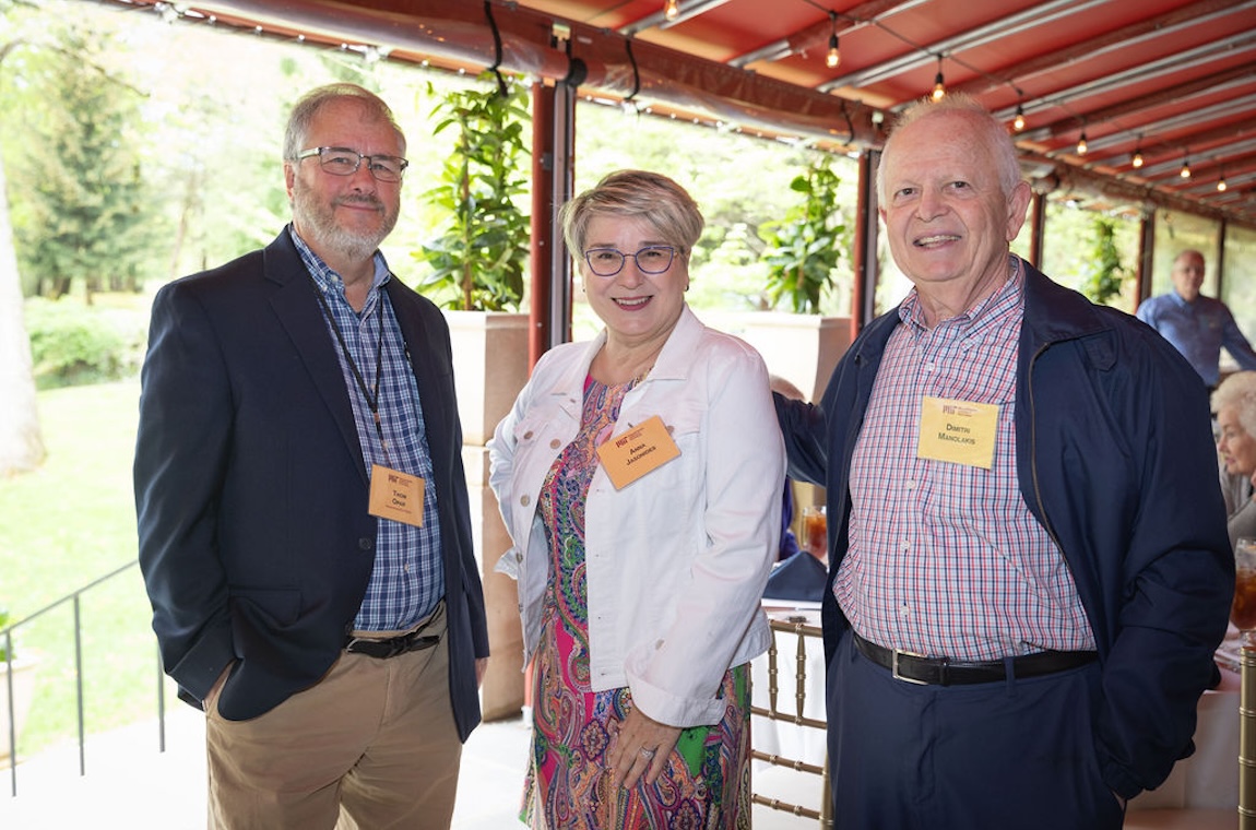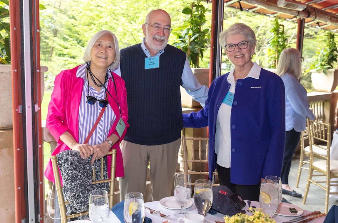 Mark and Lynn Forgues catch up with MIT Health colleague, Elaine Shiang.