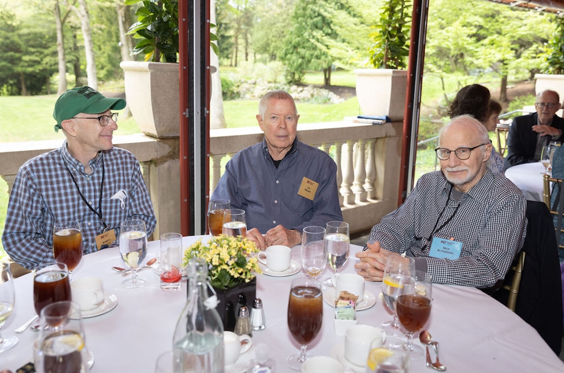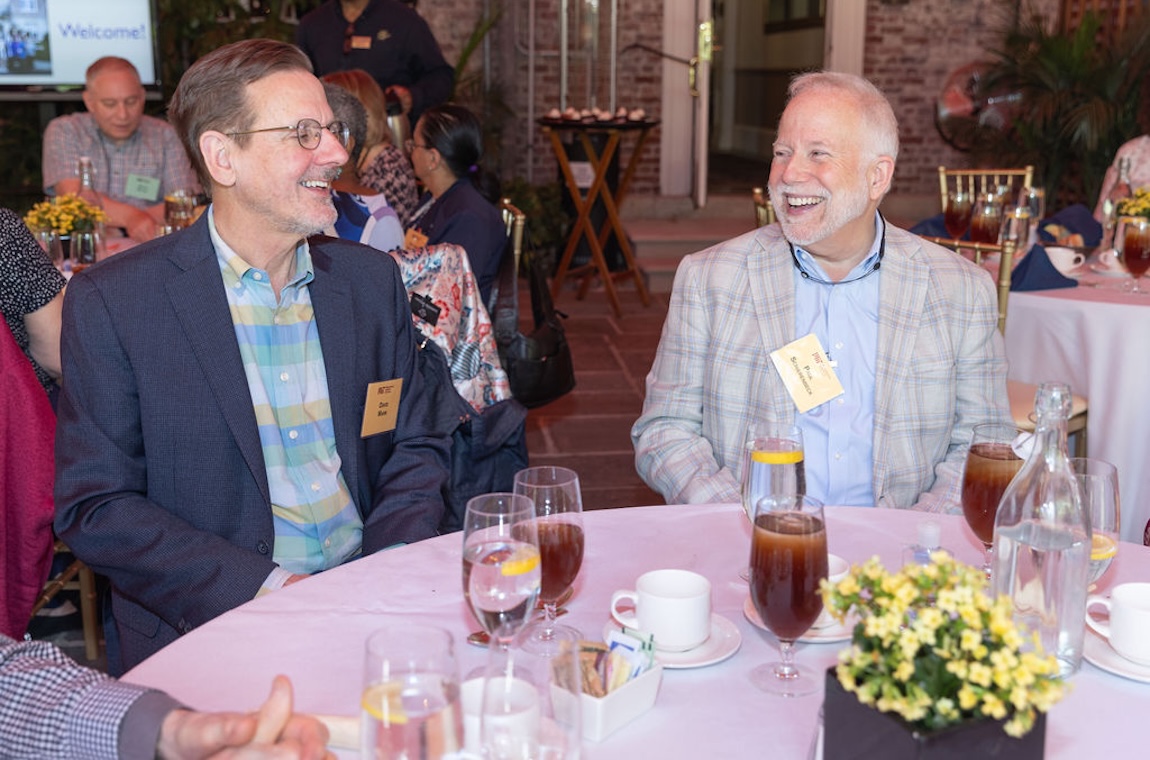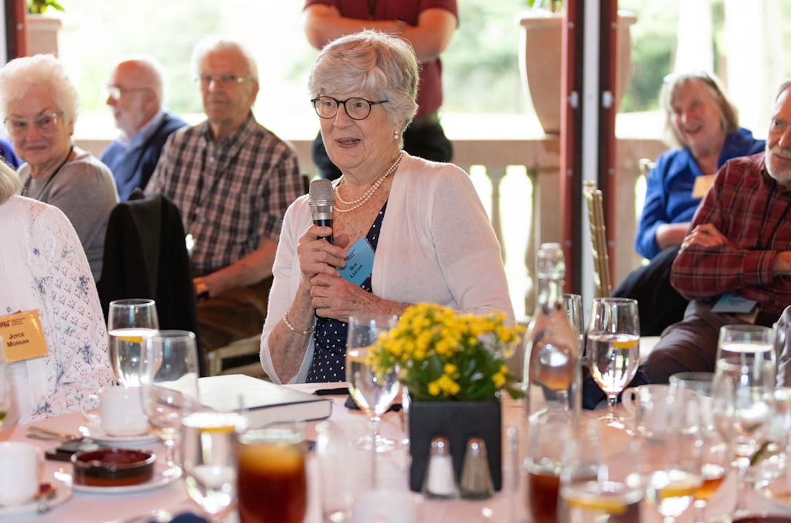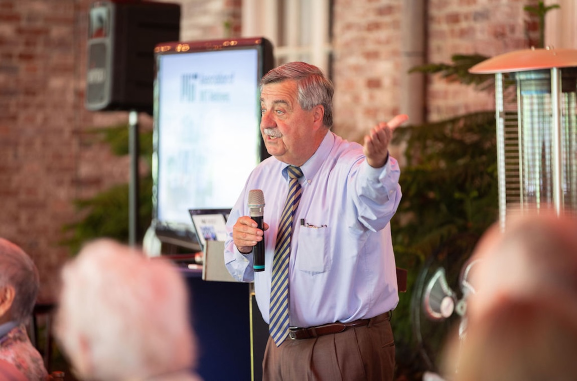 Co-President Thom Opar welcomes retirees and guests to Endicott House.