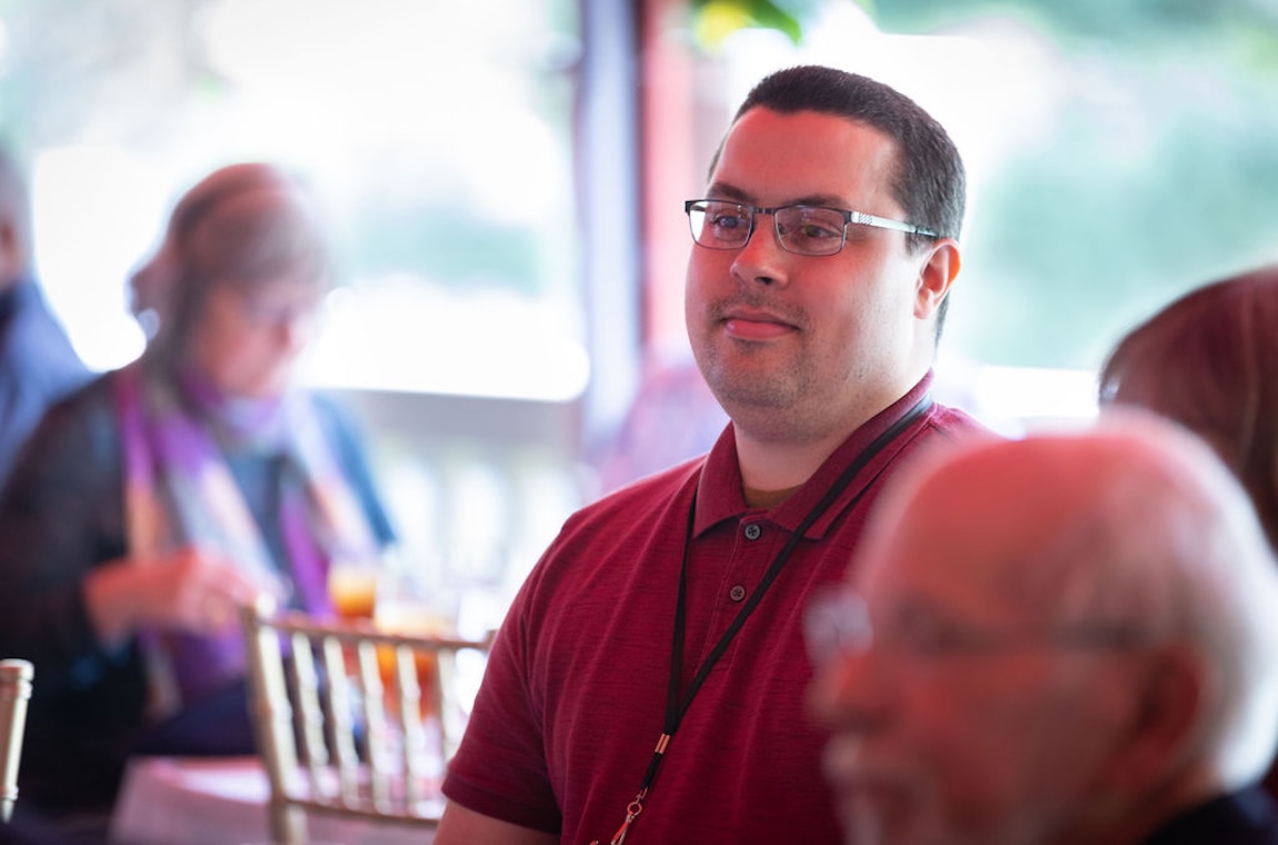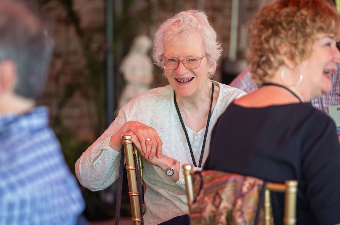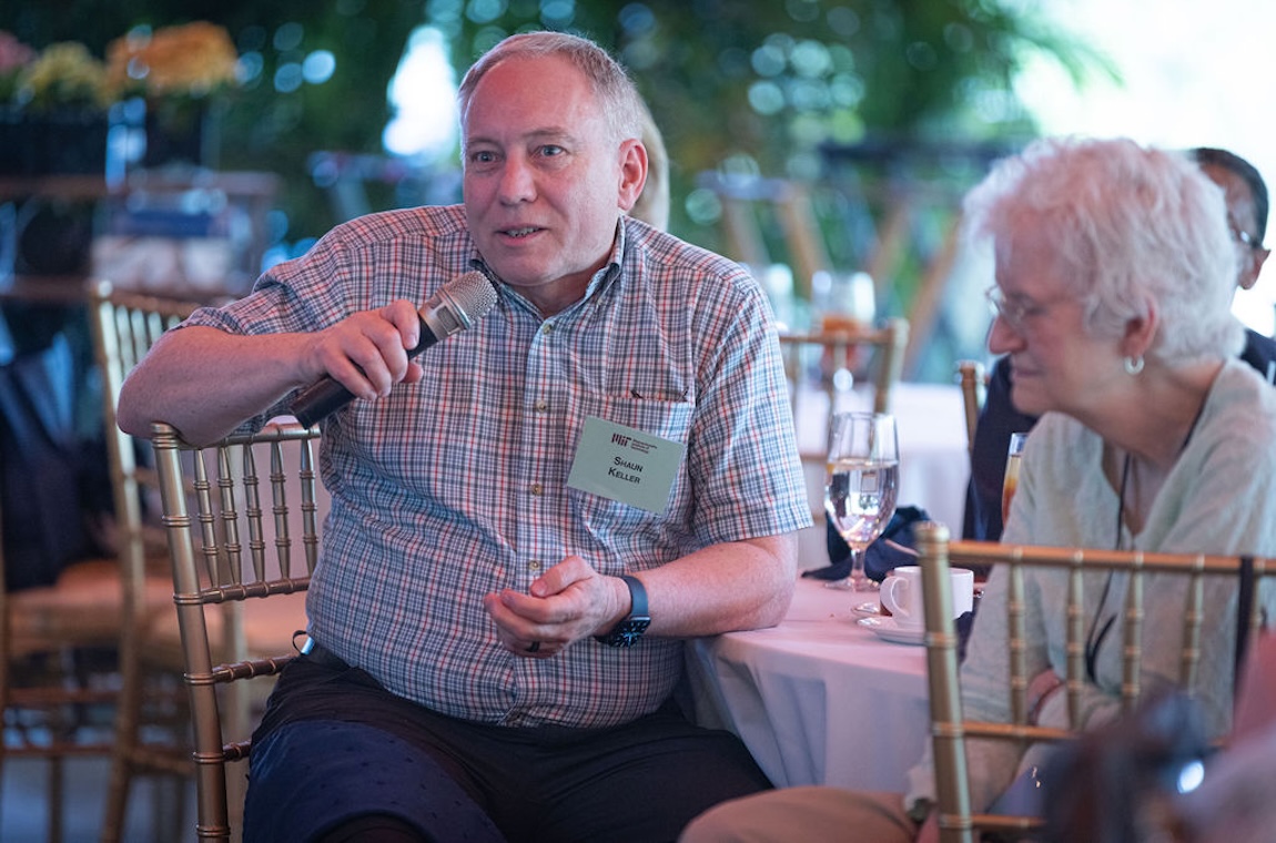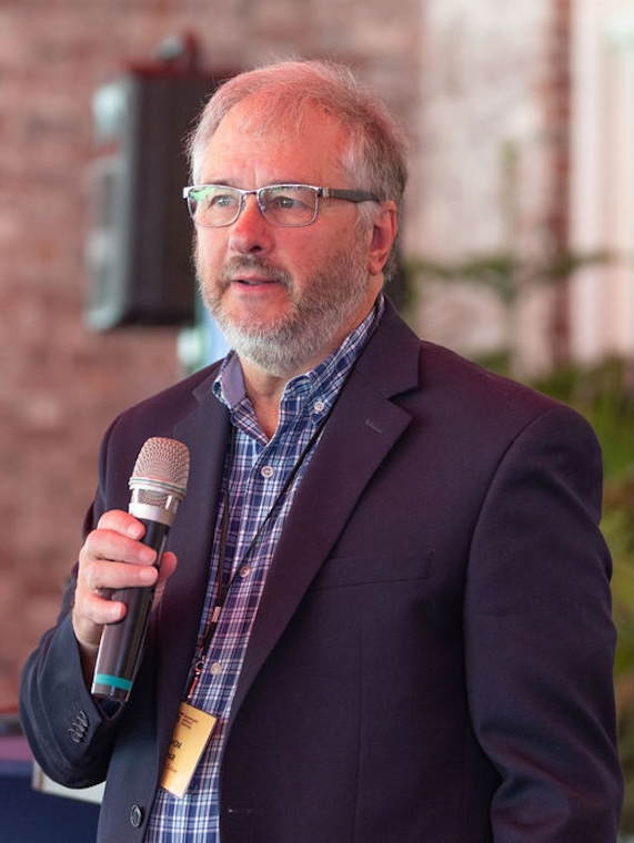 Co-President Thom Opar welcomes retirees and guests to Endicott House.